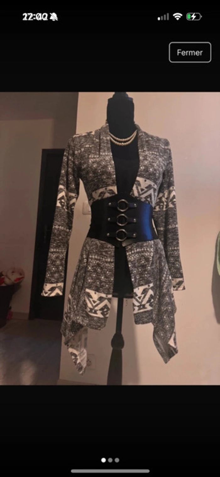 Gilet, asymétrique Marque H&M Taille 10. 12 ans. (convient très bien pour un taille S) il tombe sur les fesses Très bon état Vendu sans la ceinture #lalab0129_taille10ans #lalab0129_taille12ans #lalab0129_tailleS