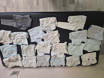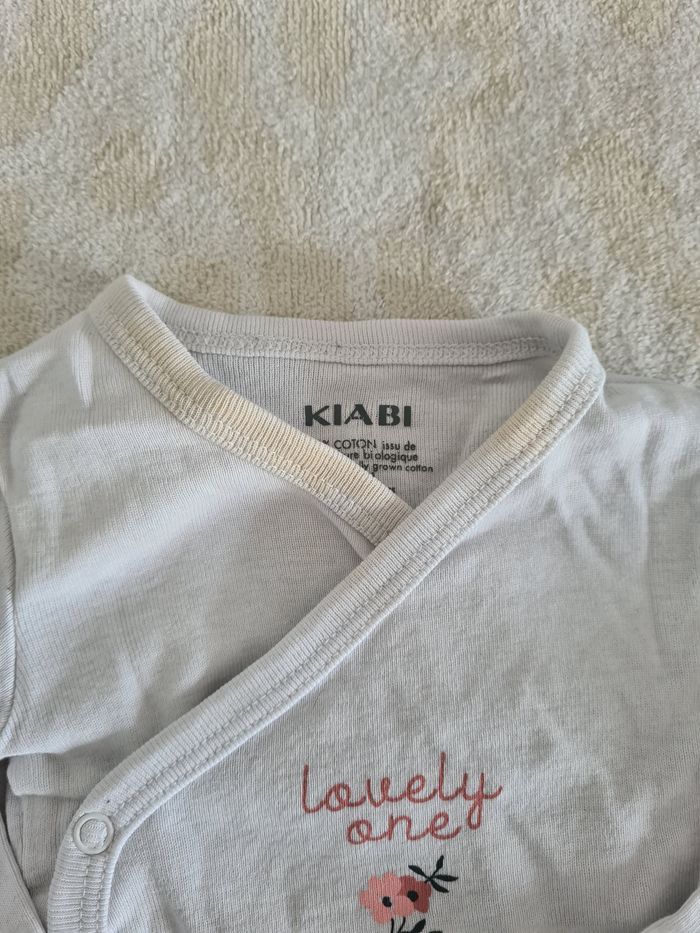 3 bodies de taille 1 mois. En bon état malgré les tâches sur les cols que je n'arrive pas à faire partir.