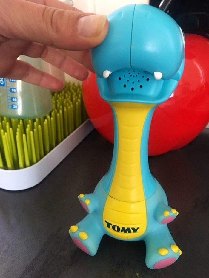 Bébé dino de Tomy secoue le et des qu’il ouvre la bouche il grogne 🦖