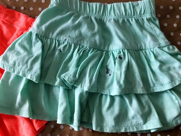 Petite jupe à froufrou 😍 3 ans kiabi une en parfait état et la 2eme je l’offre elle est tachée mais pour traîner ... 😉 #fille #fille3ans #jupe3ans #jupe
