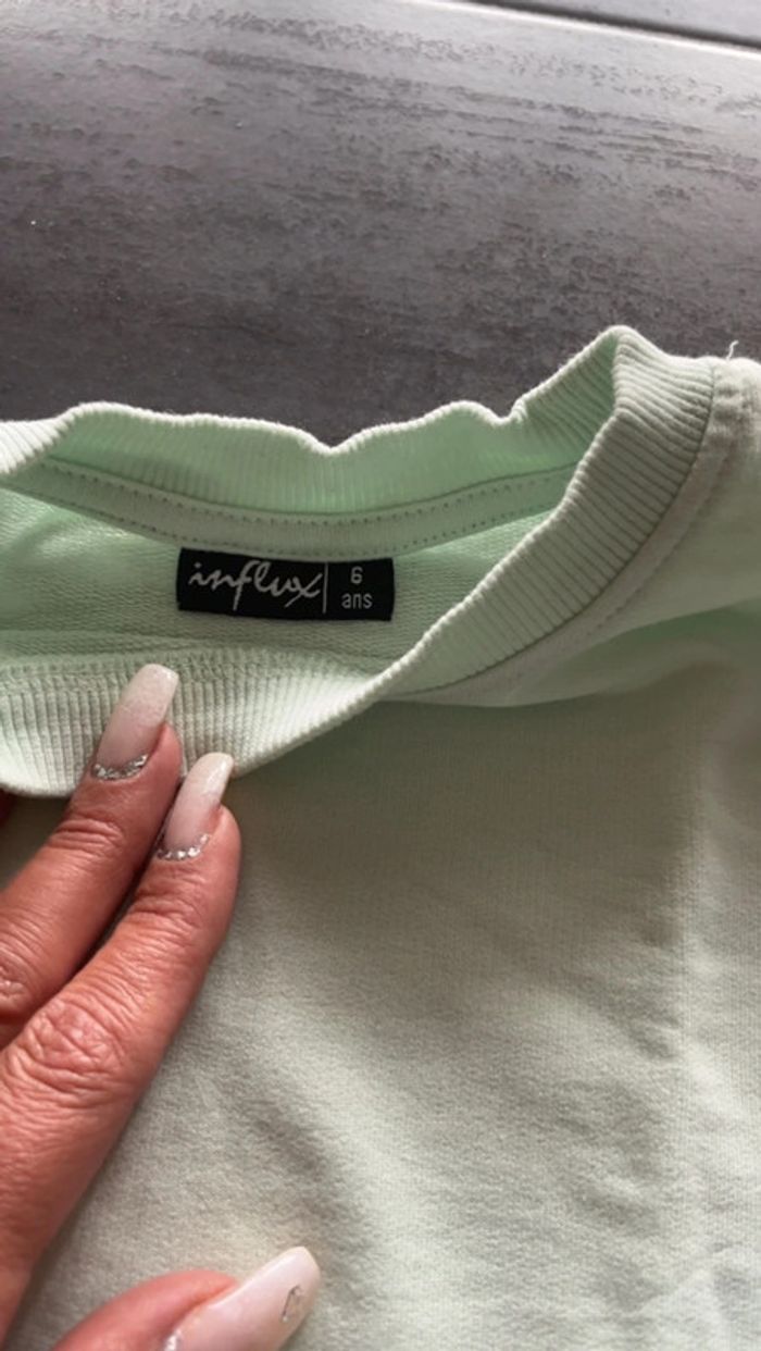 Ensemble, jogging CROP Top Taille six ans Marque influx Couleur menthe Petite tache sur CROP top voir dernière photo #lalab0129_taille6ans