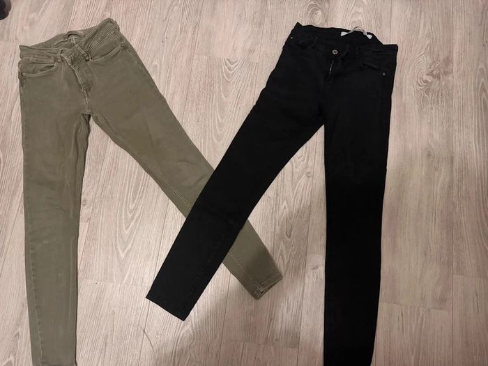 Lot 2 Jeans Skinny, Zara Taille 36 Très bon état Le noir est en parfait état. Le kaki voir photo, passant de ceinture recousue. #lalab0129_taille36 #lalab0129_tailleS