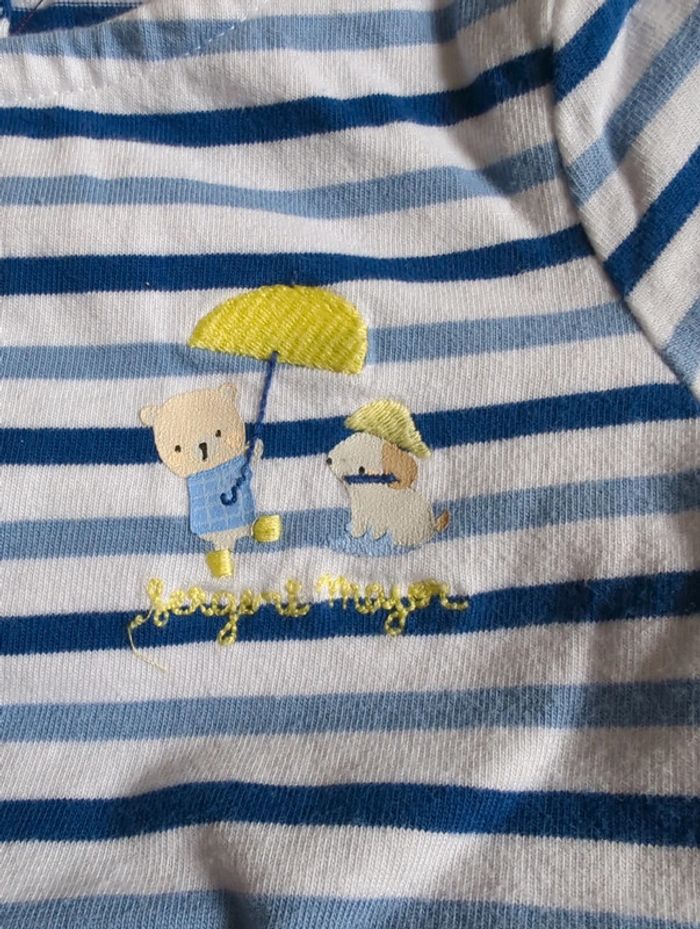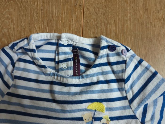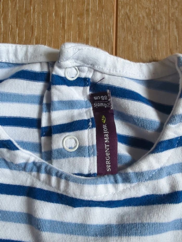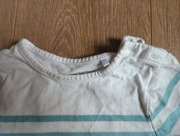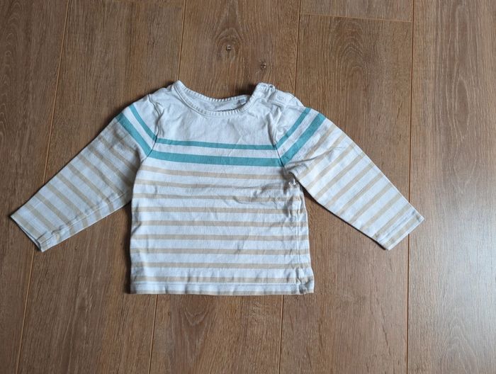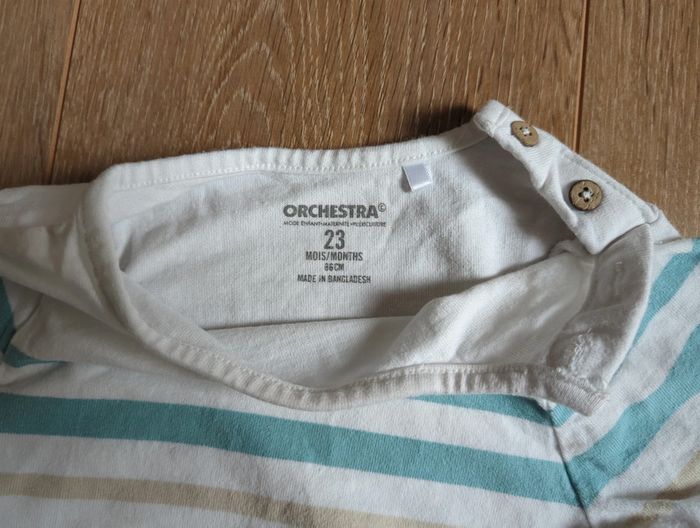 Lot de 2 t-shirt mixtes coton manches longues Orchestra : rayures beiges. Taille 23 mois. + Sergent major : rayures bleues foncées. Taille 24 mois Défaut : Étiquette à l'intérieur coupée