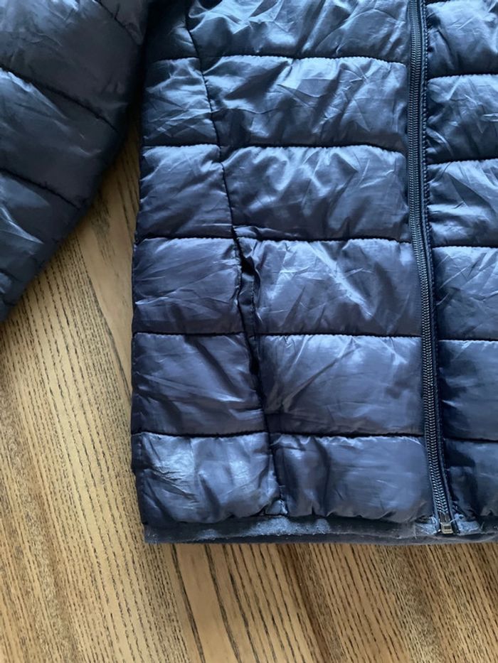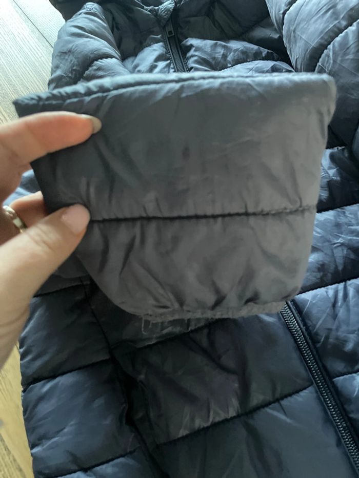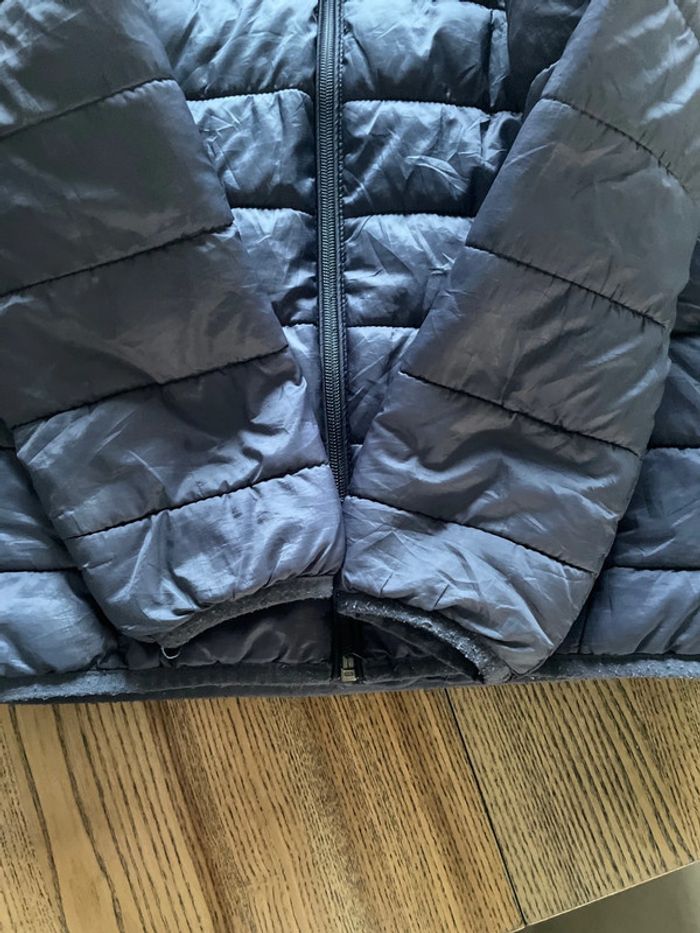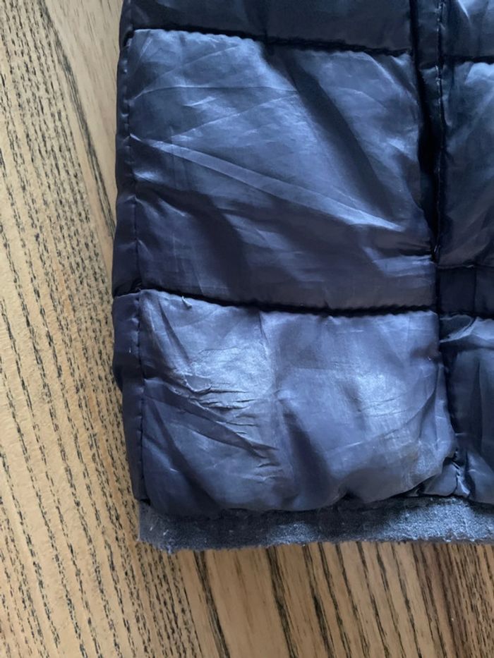 Doudoune en bon état général Présences de 2 taches sur une manche Et d’un accro Peut encore convenir pour l’extérieur.