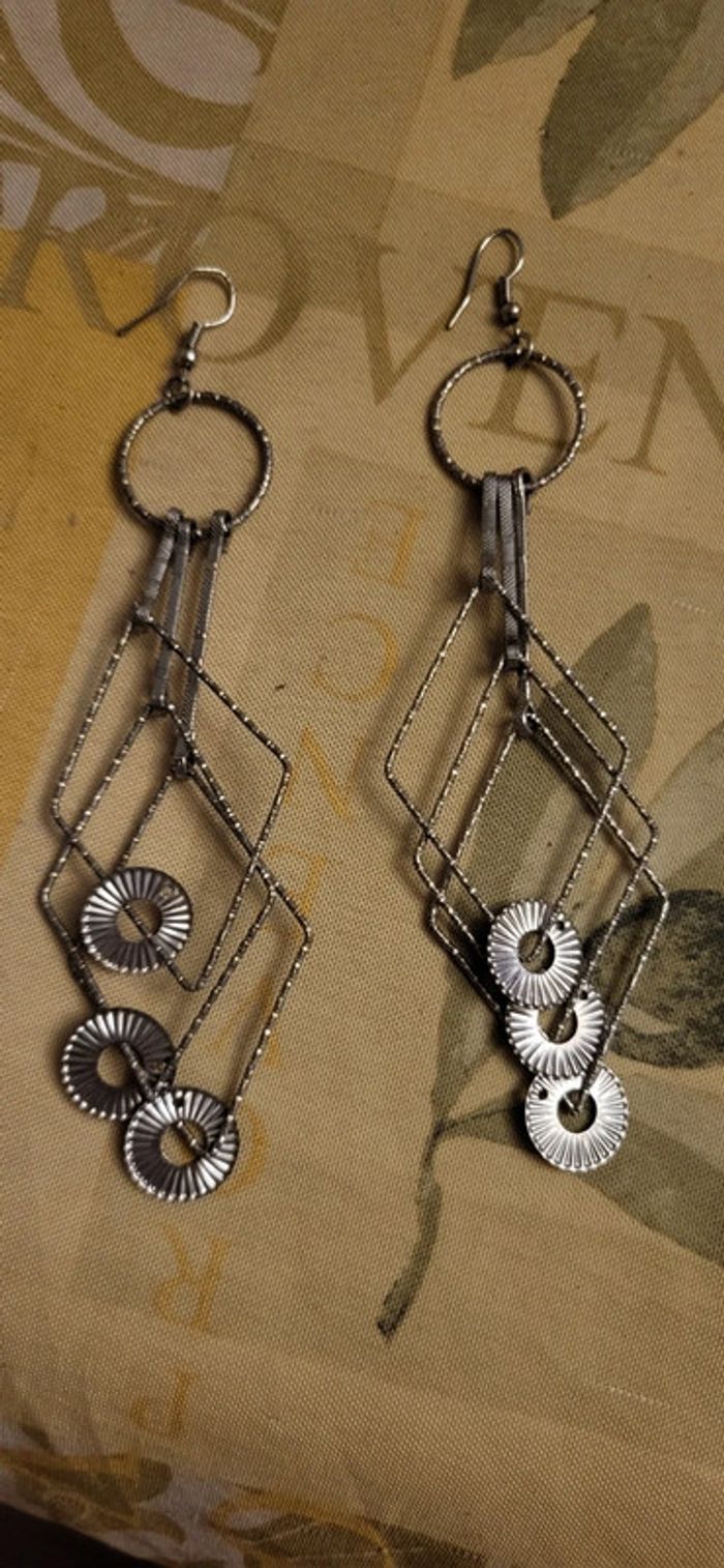 Belle boucle d'oreilles artisanale ( payé 10euros). En tres bon état. 12cm de longeur. #echelon18bijou
