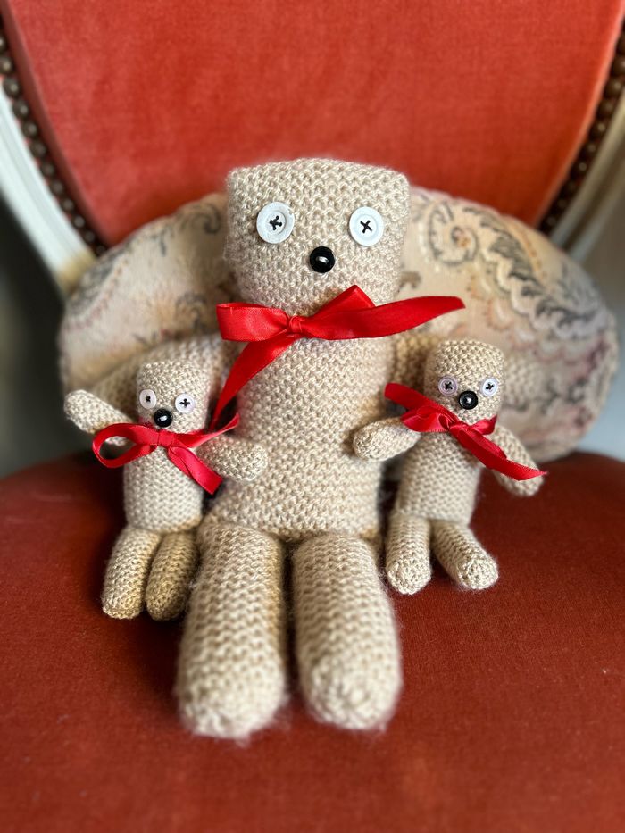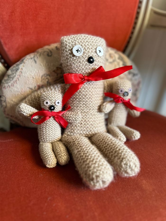 Peluche chat tricotée 🧶 à la main La maman et ses deux petits 🐱 Confectionné à la main