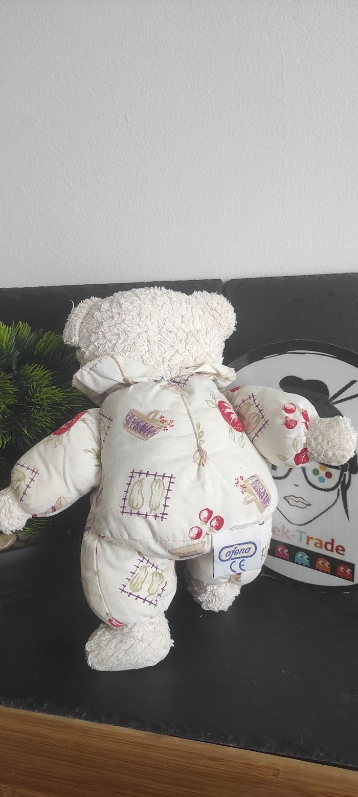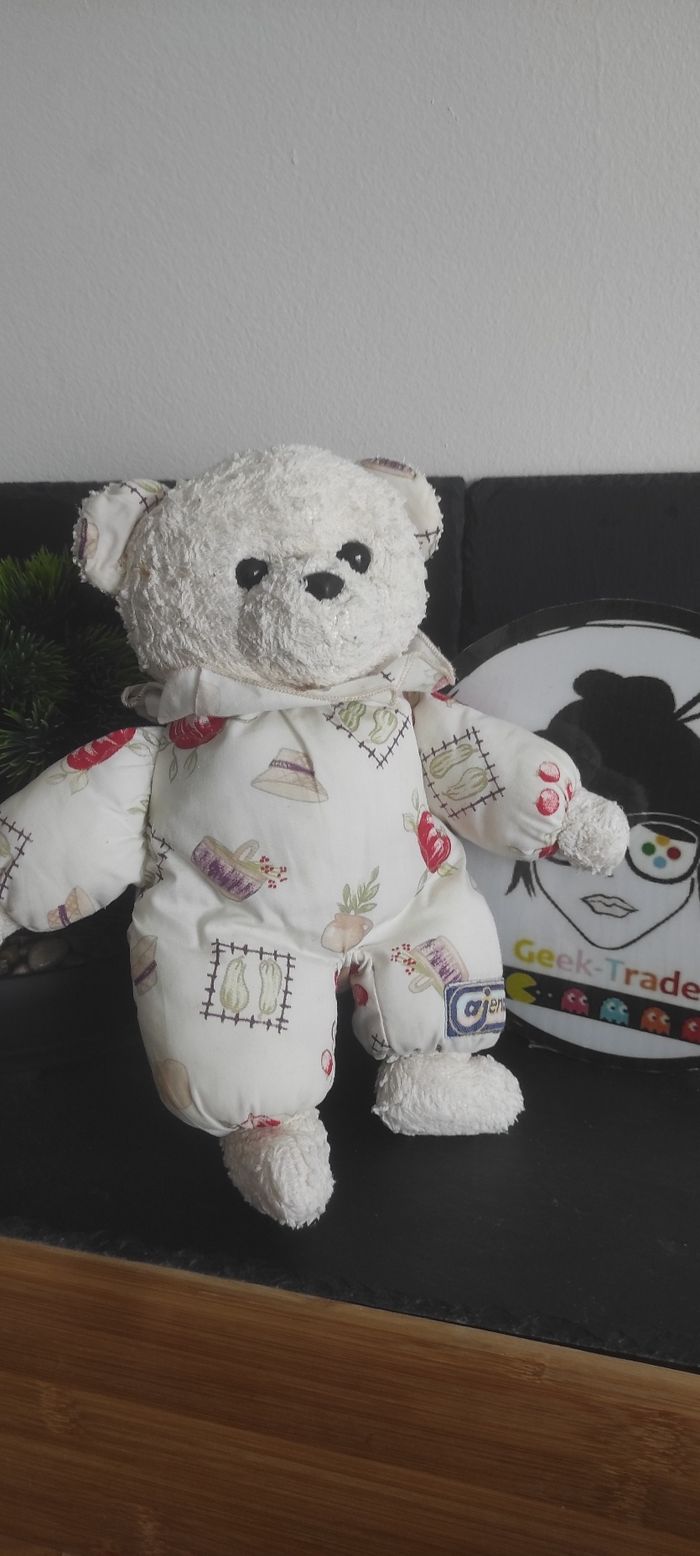 Doudou peluche ours blanc Ajena  ancien vintage panier radis jardin Rouge Courge - photo numéro 1