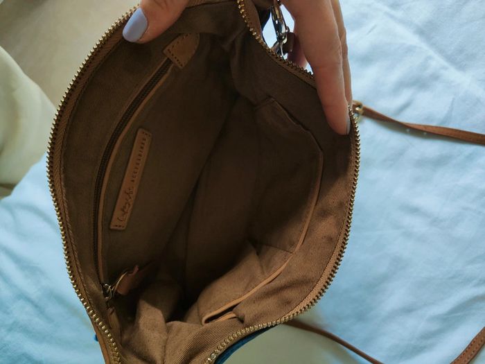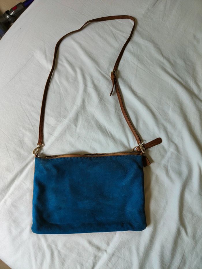 Sac à bandoulière galeries Lafayette en daim Camel et Bleu - photo numéro 2