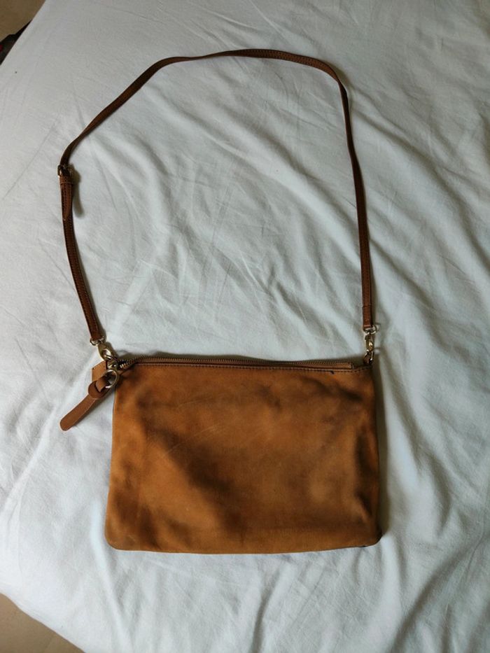 Sac à bandoulière galeries Lafayette en daim Camel et Bleu - photo numéro 3