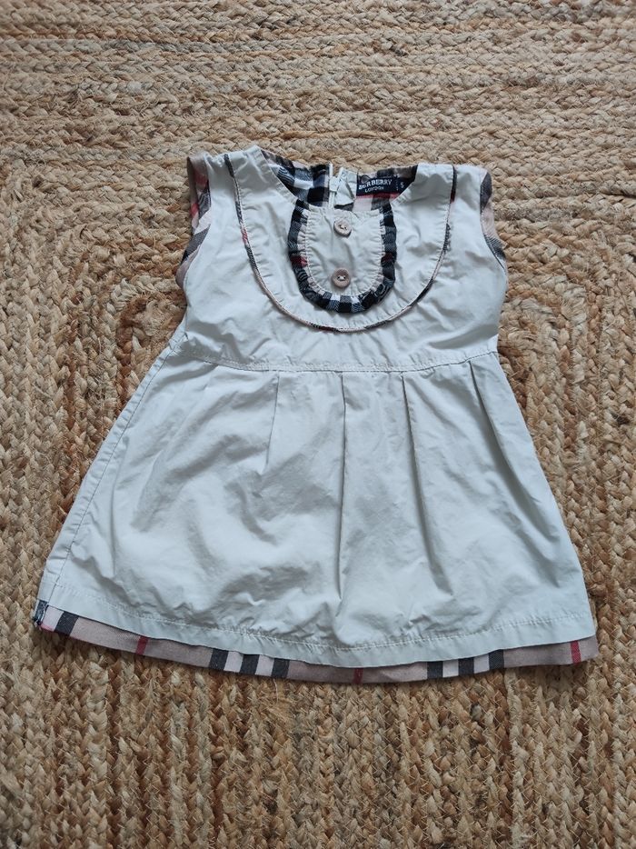 Joli robe en bon état Burberry, marqué 5 mais taille petit (juste en longueur pour enfant de 2 ans qui porte entre du 18 mois et 24 mois) Usure du tissu bas de la robe mais robe en bon état dans son ensemble. Se ferme dans le dos avec une fermeture éclair Lessive bio savon Arthur Maison non fumeur Défauts bas de robe (cf photo) et micro tâche