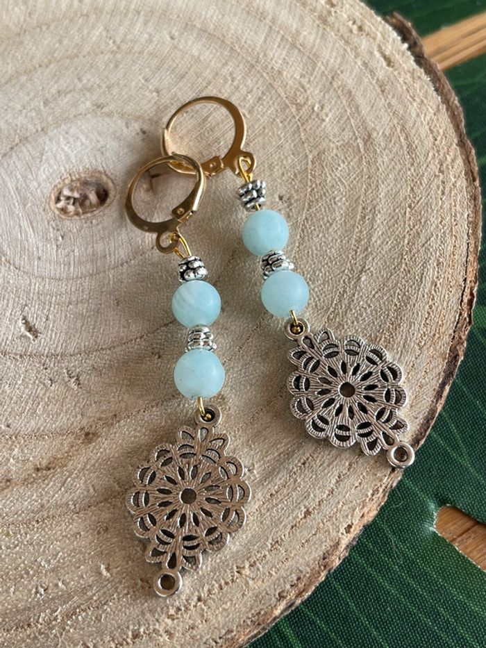 Boucles d’oreilles créoles dorées charme perles semi précieuses Aventurine verte givrée bohèmes