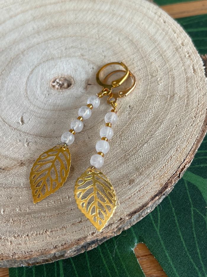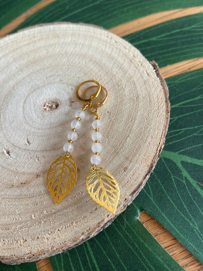 Boucles d’oreilles créoles dorées pierres lithothérapie - photo numéro 2
