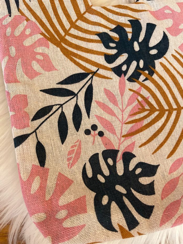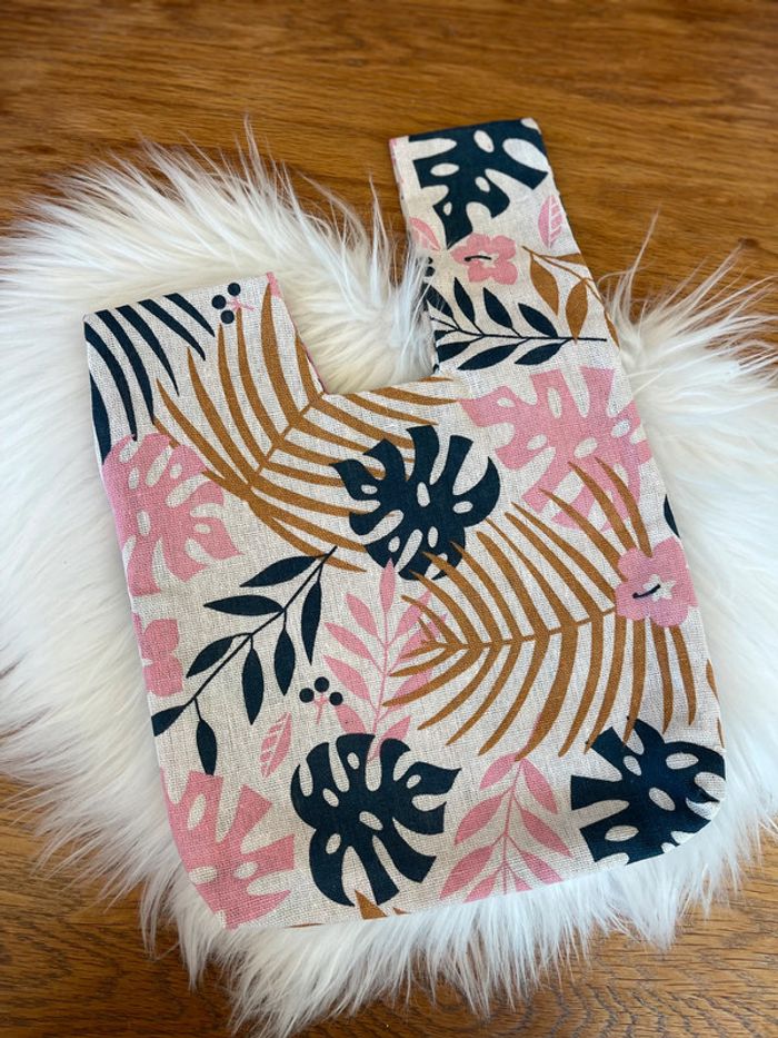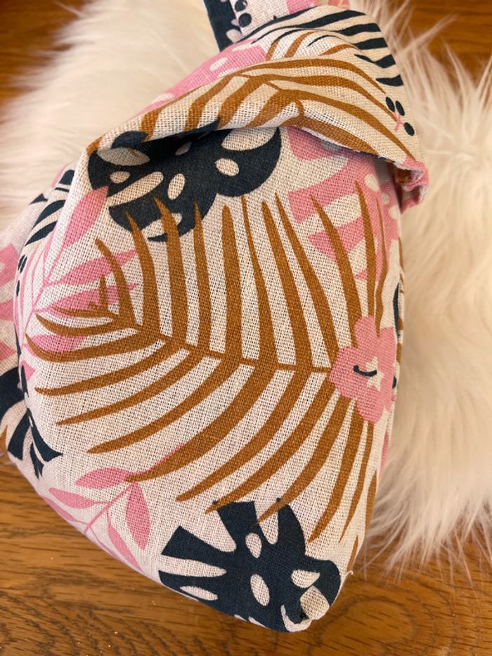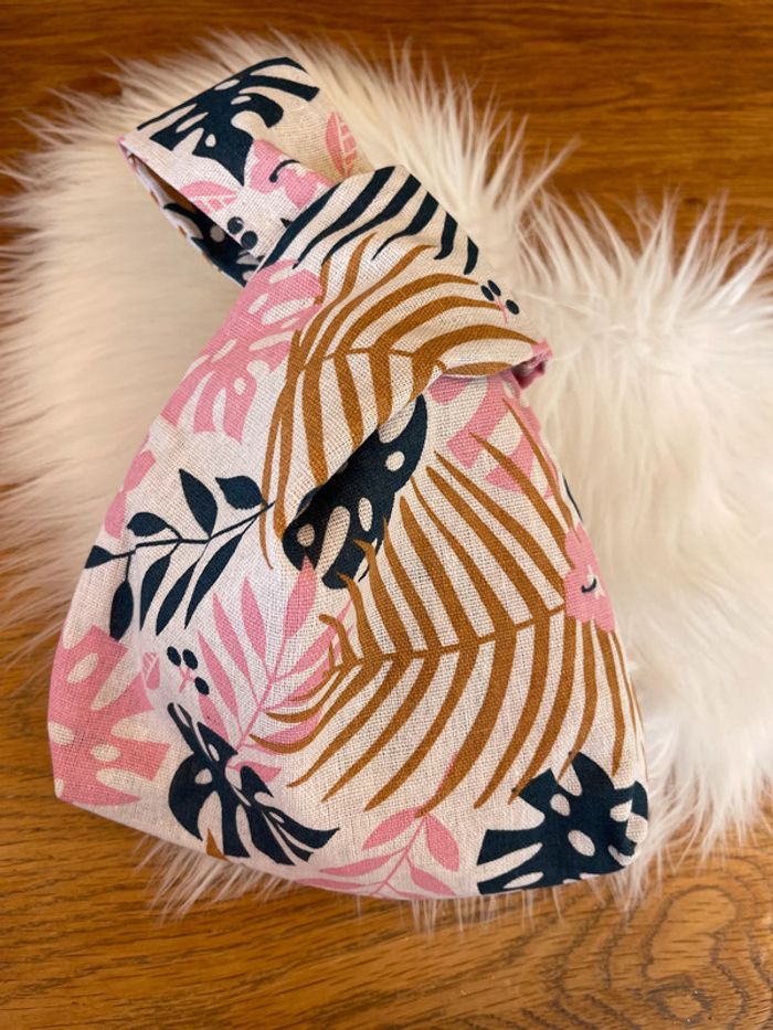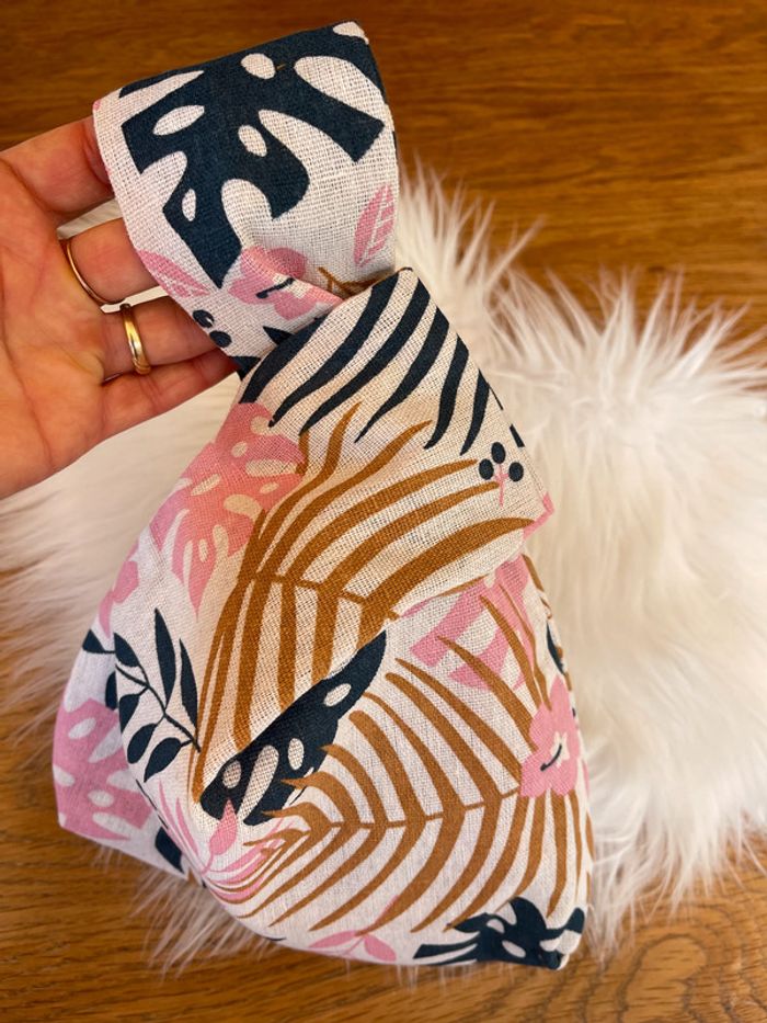 Sac à main pochette tissée rose et ocre fleuri, petit sac à noeud fourre tout japonais, furoshiki Dimensions totales 24x34 cm Dimensions intérieur 24x22 cm