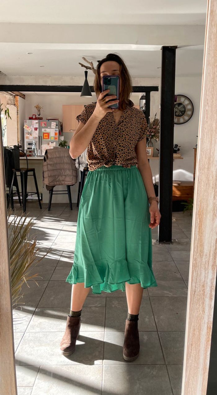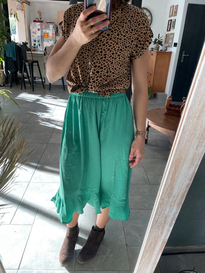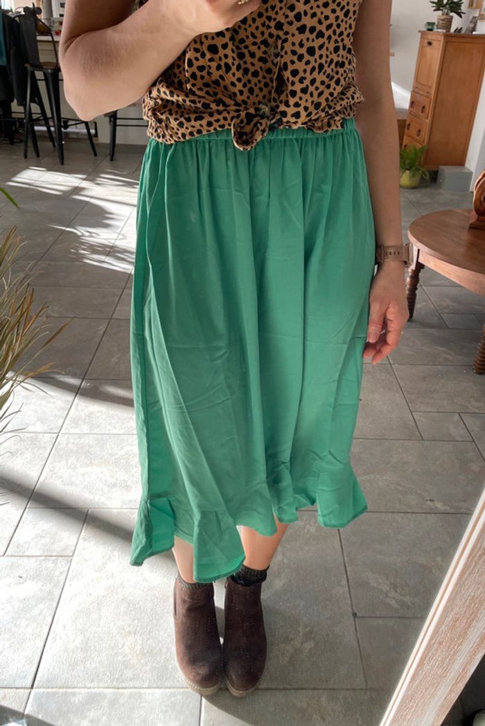 jupe neuve verte à volant très fluide