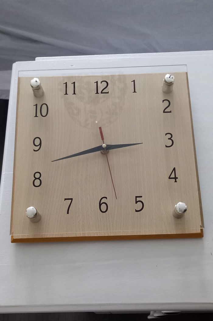 Horloge murale Support bois, chiffres sur verre En parfait état de fonctionnement Dimensions 28 cm x 28 cm #deco_imoddeco