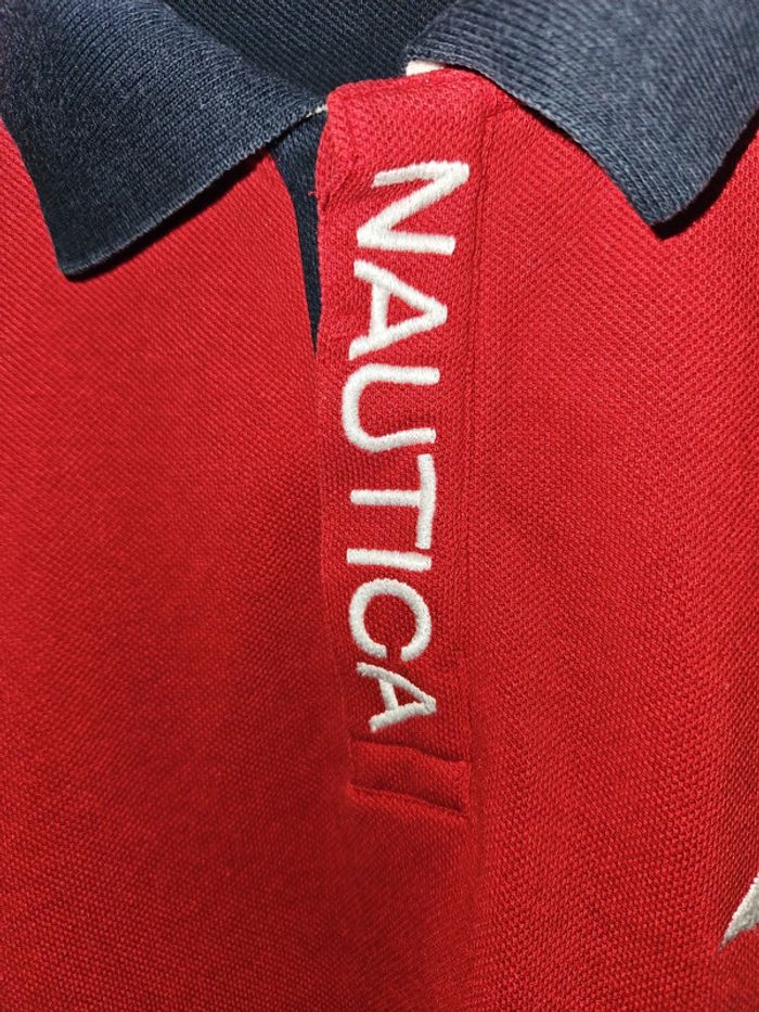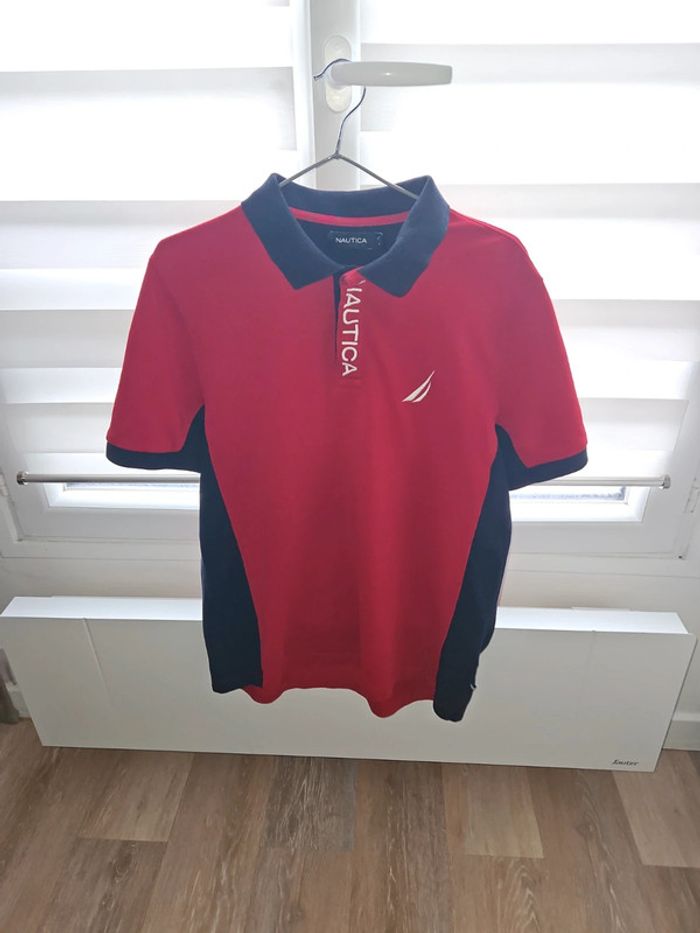 Polo homme marque nautica taille M excellent etat bleu marine et rouge