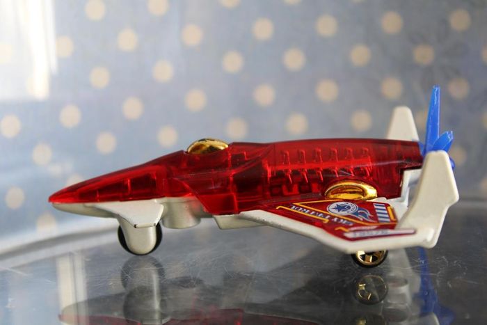 Avion miniature fantaisiste Échelle : environ 1:100 Couleur : Rouge translucide (plastique), cokpit doré Base : Métal peint en blanc N° : G6726 Fabricant : Hot wheels Année de production : 2011 sur un moule de 2005 Désigner : Steve Moran En très bon état. vitrage intact Très rares manque de peinture. Réponds avec plaisir aux demandes d'informations complémentairre Réponse rapide envoi soigné dans les meilleurs délais