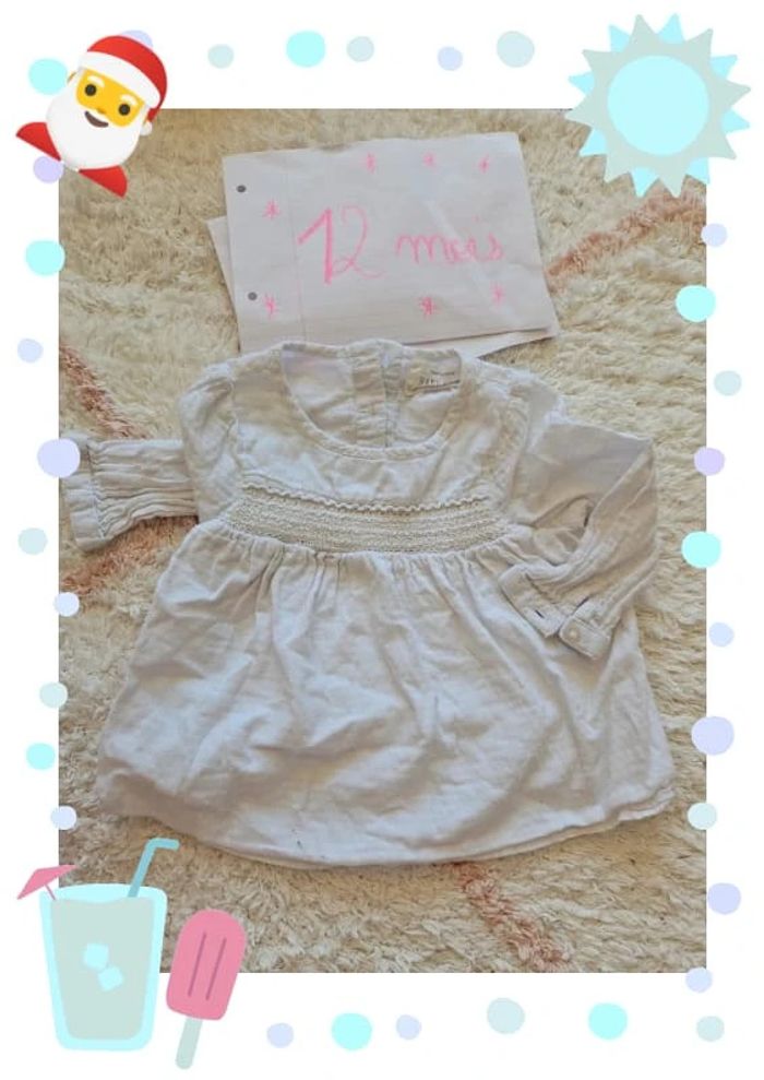 Blouse blanche zara kids taille 9 12 mois Haut smocké - photo numéro 2