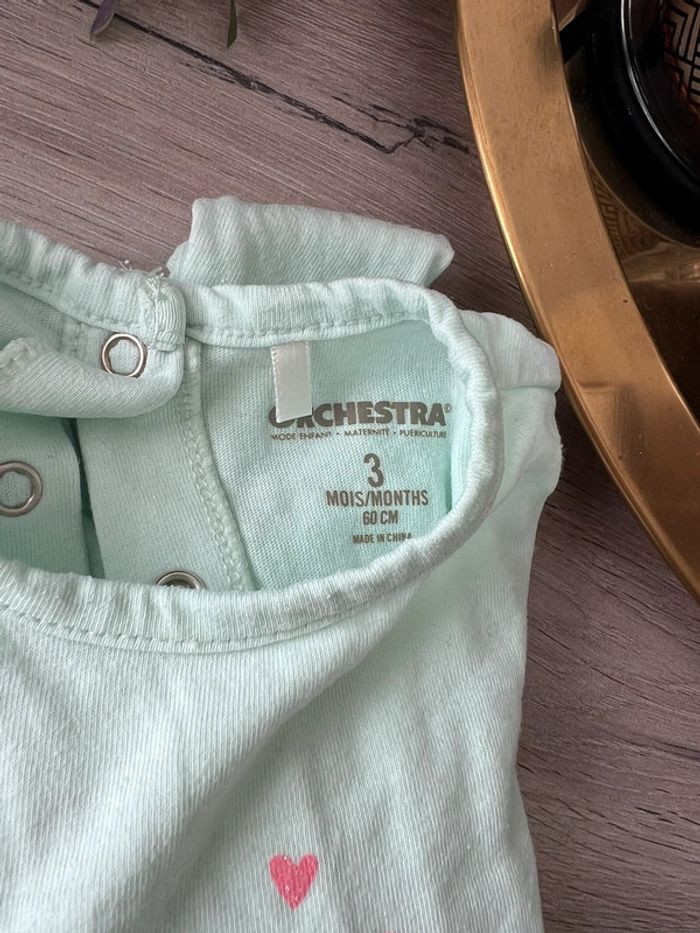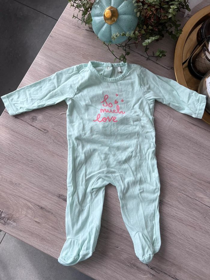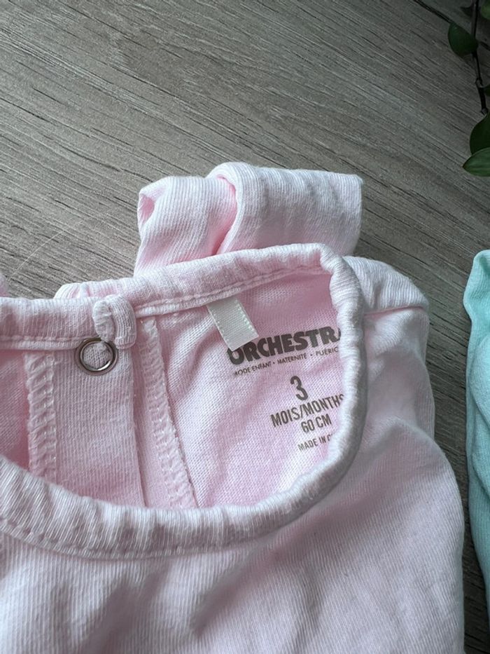 Lot de 2 pyjamas / grenouillères manches longues rose et verte taille 3 mois - photo numéro 7