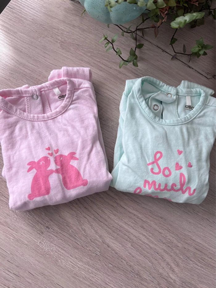 Lot de 2 pyjamas / grenouillères manches longues rose et verte taille 3 mois - photo numéro 10
