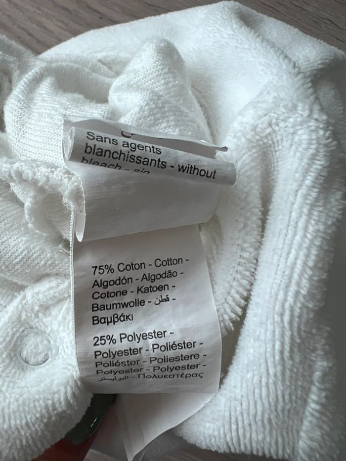 Pyjama / grenouillère blanche manches longues en velour taille naissance - photo numéro 6