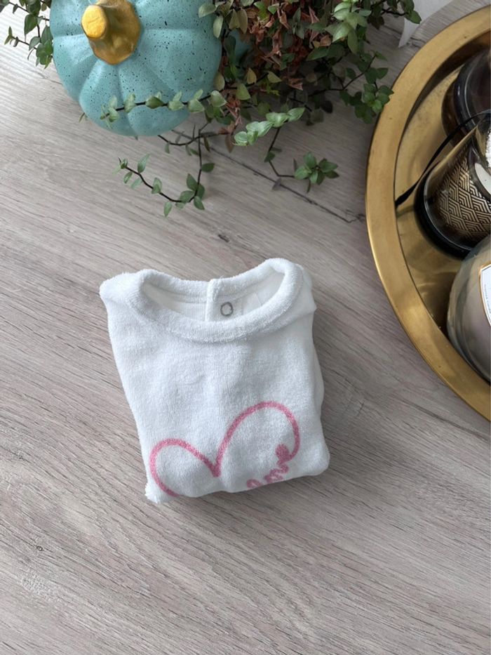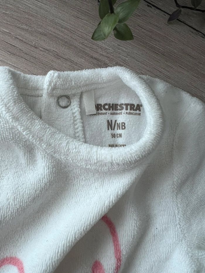 Pyjama / grenouillère blanche manches longues en velour taille naissance - photo numéro 3