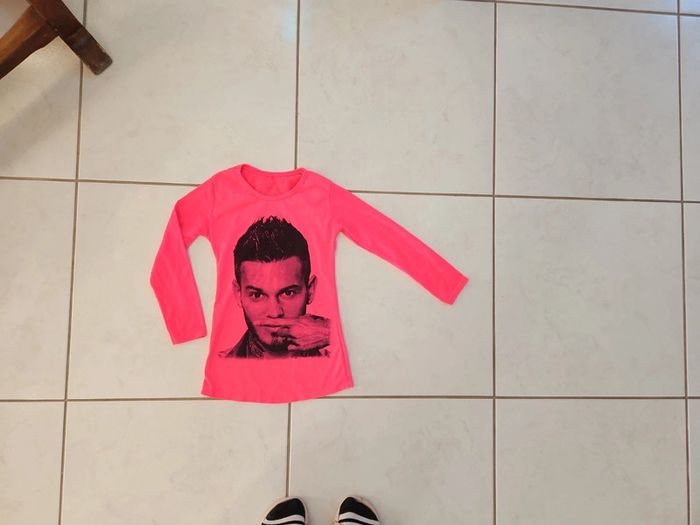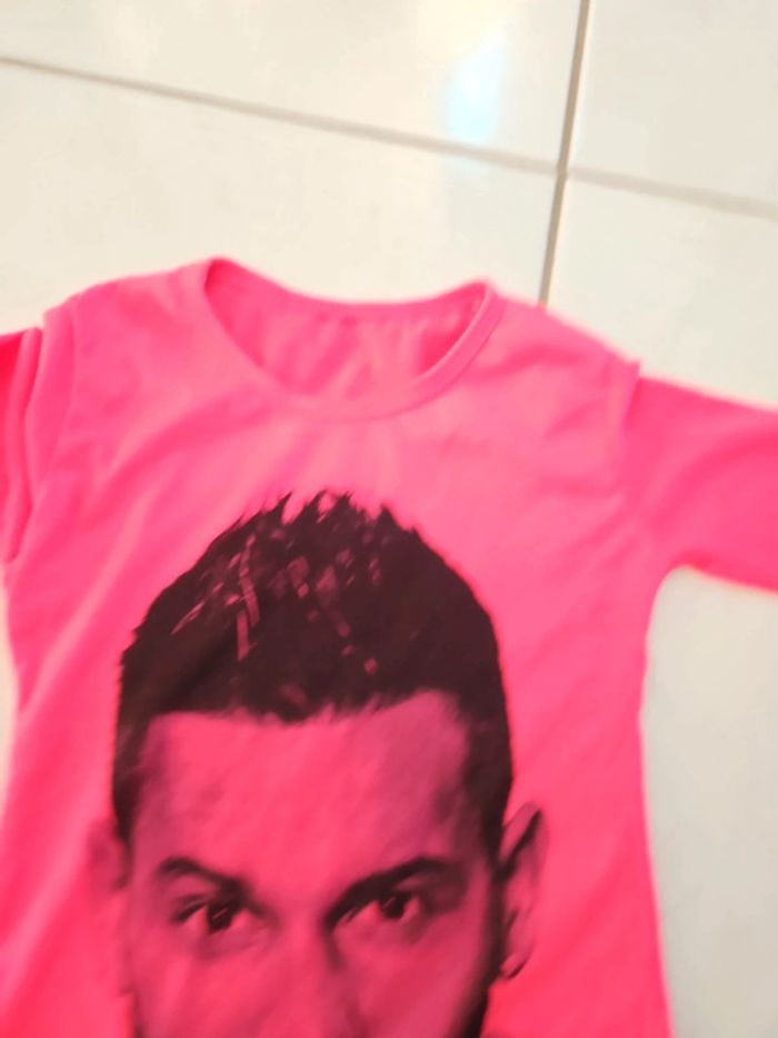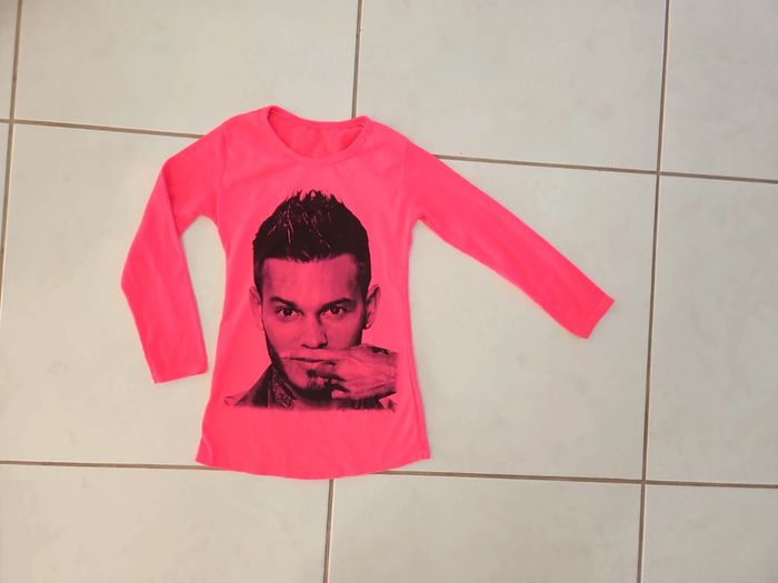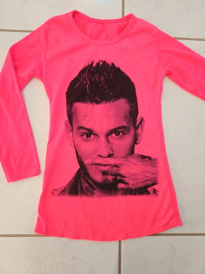 Tunique/ tee shirt long rose fluo Motif M. Pokora N'hésitez pas à aller voir mes autres ventes classées par #eloio #eloiofille8ans #eloiocollection