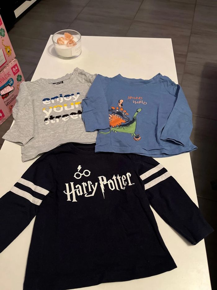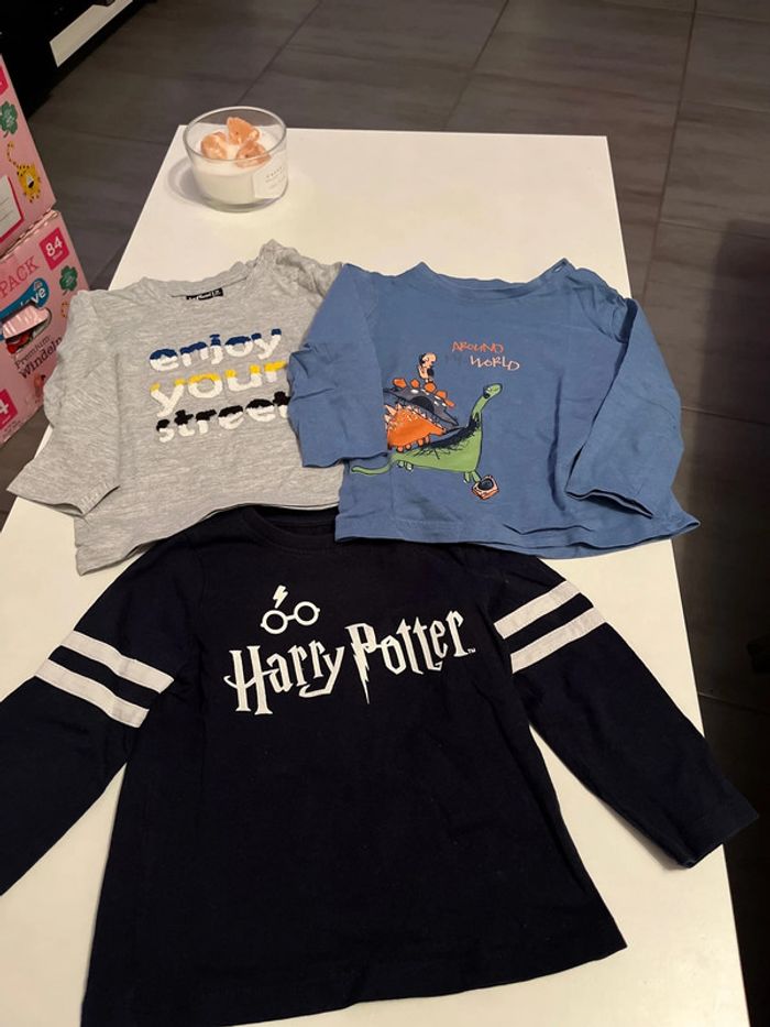 T shirt manches longues en très bon état taille 18 mois Un influx Un gemo Un orchestra harry potter