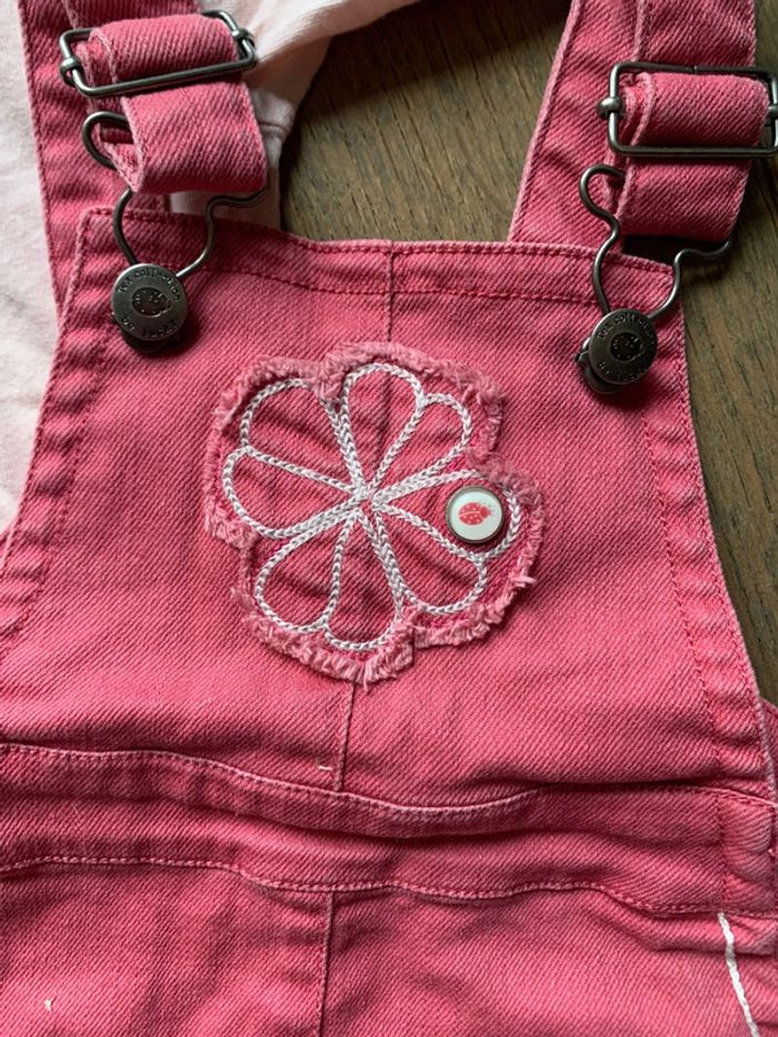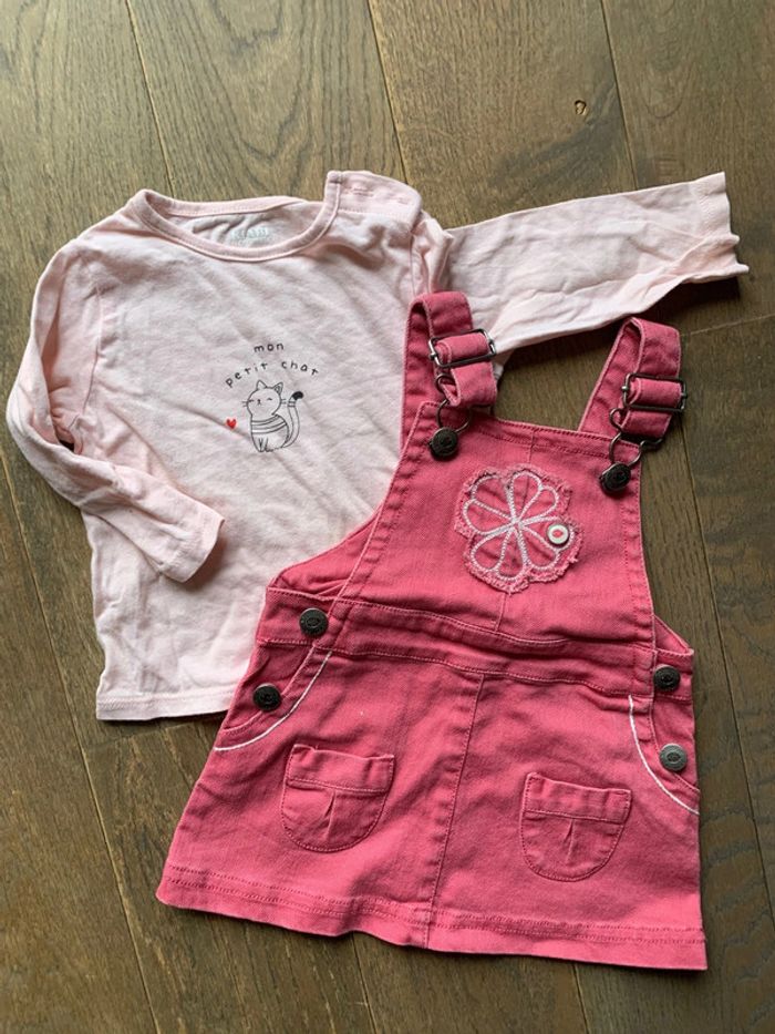 Robe salopette en jean Fuschia tex + t-shirt ml Kiabi Le tout est comme neuf #bébéfille6mois