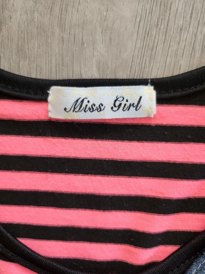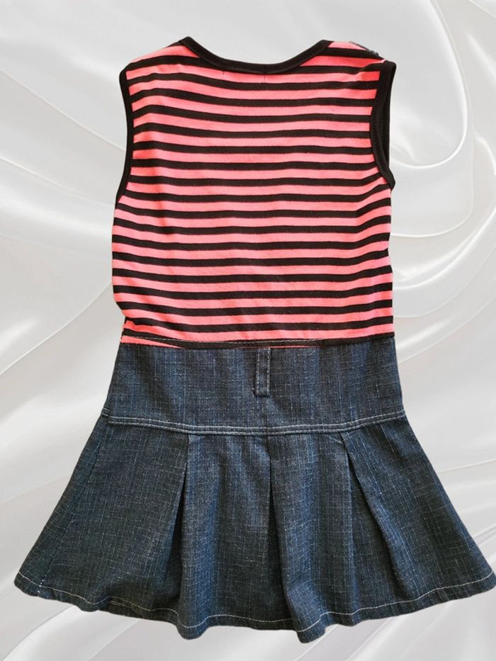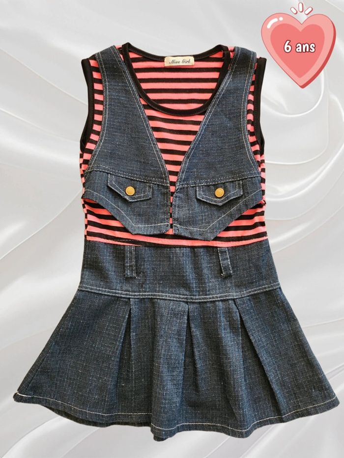 Vends robe, taille 6-7 ans, de la marque Miss Girl, de couleur rayée rose et noir et bas en jean bleu. Remise en main propre possible ⚠️ Pas d'envoi par Vinted Go car aucun point dans ma région. #Nebchan_fille6ans