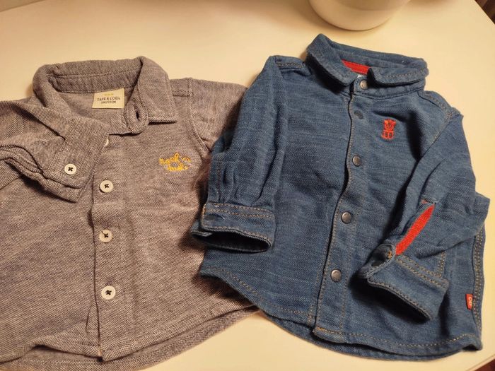 Lot de 14 vêtements bébé garçon - Taille 3 mois Je vends un lot de vêtements pour bébé garçon, taille 3 mois, en très bon état. Idéal pour préparer la garde-robe de bébé sans se ruiner ! Le lot comprend : 7 tee shirts à manches longues (divers motifs et couleurs) 4 pantalons/leggings 3 hauts à col et à manches longues (chemises et t-shirts) Marques : Kiabi, Disney Baby, , etc. Tous les vêtements sont lavés et en excellent état. Possibilité d’envoi rapide. N’hésitez pas à me contacter pour plus de photos ou d’infos !