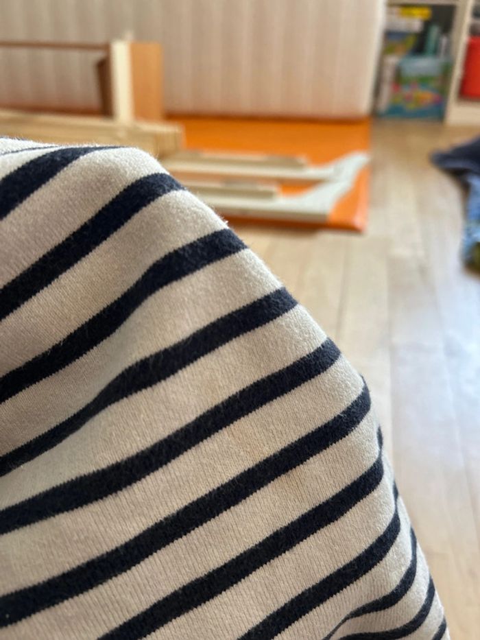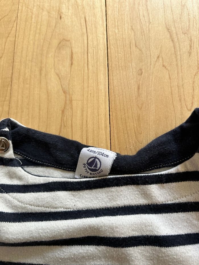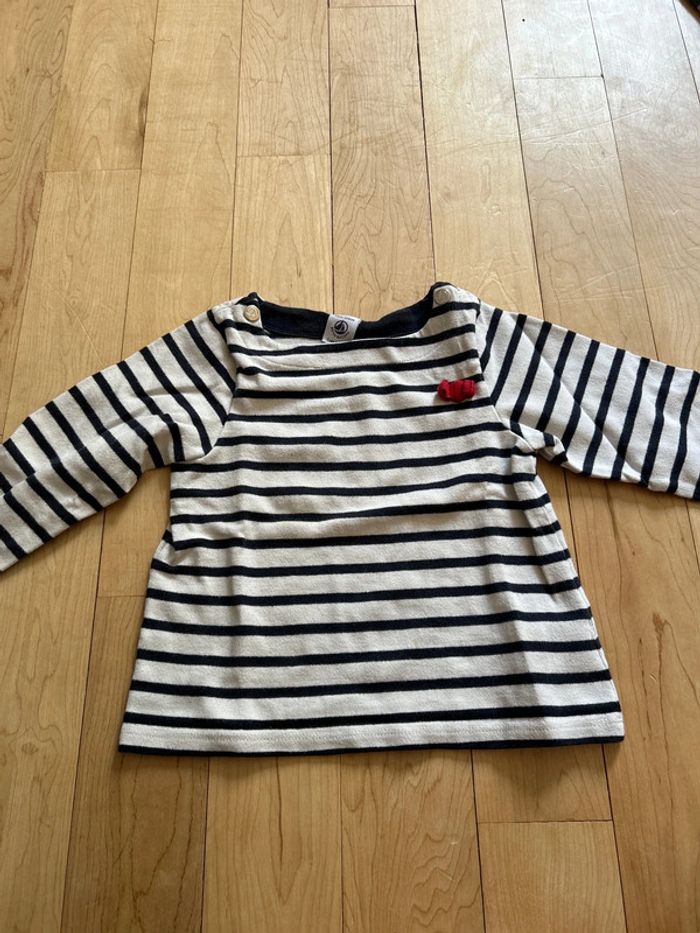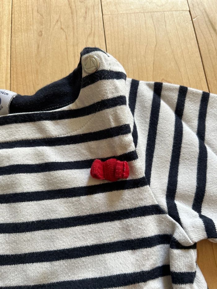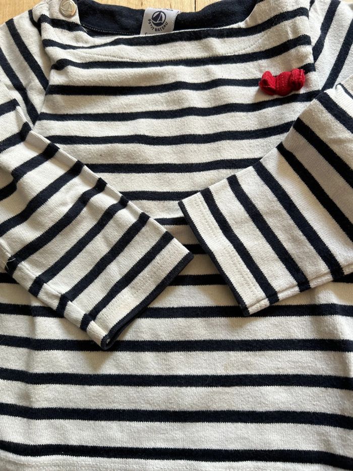 Noeud rouge Porté, tissu vieilli mais beau tissu épais Petit Bateau. À noter une légère tache devant (voir photo)