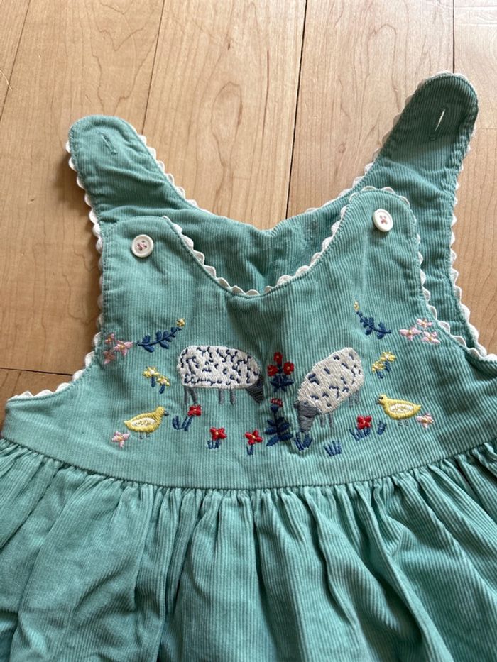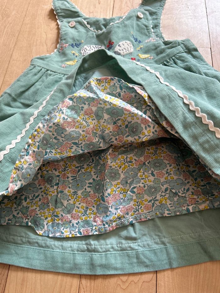 Sans marque et sans taille mais je dirais que c’est du 1 ans Jamais portée Belles finitions, petits moutons oiseaux et fleurs brodés. Jolie doublure avec tissu fleuri Idéal mi-saison
