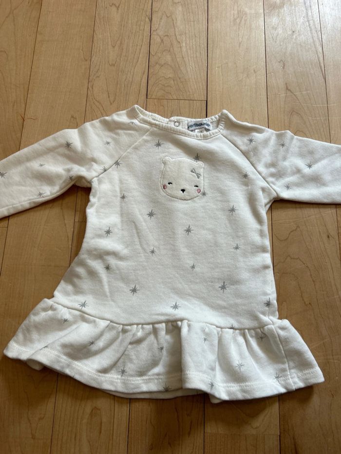 Robe étoilée avec petite oursonne Petit boléros tout doux 9 mois jamais porté juste lavé N’hésitez pas à aller visiter mon dressing vêtement fille (0-6 ans) et garçon (0-3 ans), #liberty #petitbateau #jacadi #cyrillus #marlot #cyrillus Réduction appliquée sur les lots. Envoi rapide.