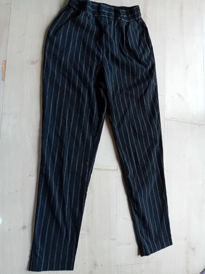Pantalon fluide style tailleur taille S Noir fines rayures blanche Pimkie Très bon état