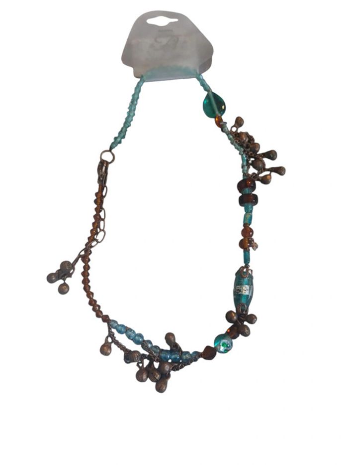 Collier cœur métal perle potes aqua/choco Neuf jamais servi
