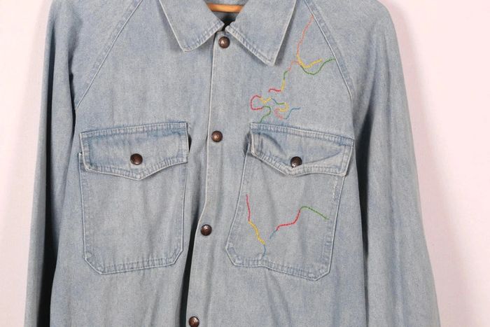 🌼 Remise sur les lots 🌼 -5% pour 2 articles -10% pour 3 articles -15% pour 4 articles -20% pour 5 articles et + www.instagram.com/kozhaevintage 🫶 🫶 Jolie veste en jean brodée à la main, pour quelques notes de couleurs uniques. Taille 34 à 38 (oversize à ajusté) (indiqué taille 46) 🌈 Caractéristiques : Coloris : bleu et multicolore Matière : jean coton Epoque : #Vintage des années 2000's À manches longues. Condition : très bel état Mesures à plat : Poitrine : 52 cm - Longueur totale : 66 cm - Référence : 240628 📢 Réductions sur les lots activées www.kozhae.com pour les avant-première Envoi rapide & soigné. Chaque pièce est chinée avec amour & passion en Bretagne. friperie 70s 80s 90s 2000S 60s y2k seventies eighties nineties ancien thrift hand coton katoen cotone algadon baumwolle fibre festival kitsch upcycling intemporel basic basique capsule original unique retro preppy cottage années anos year anni "