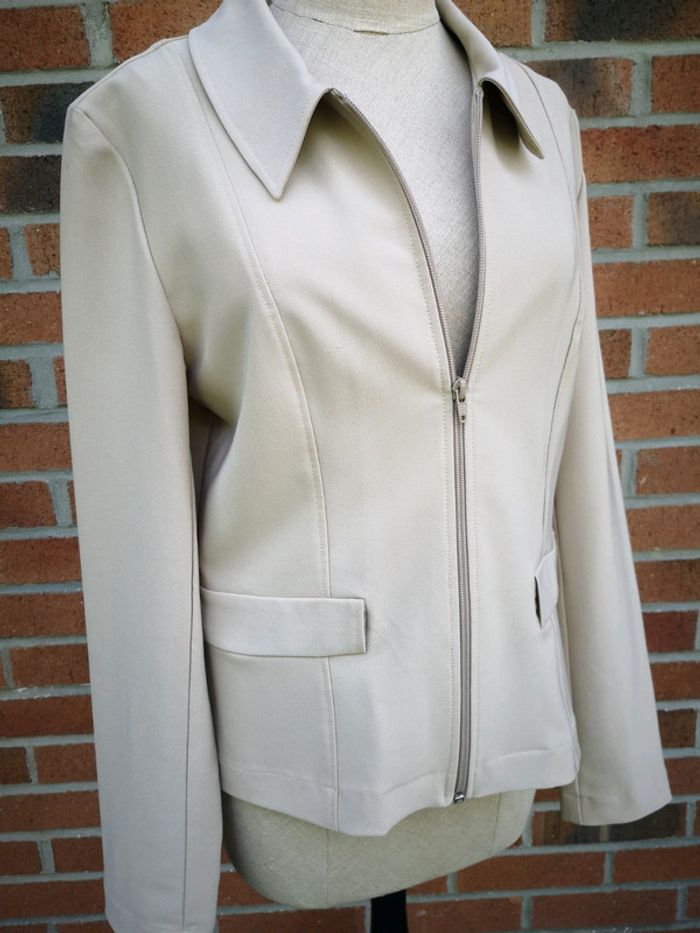 Veste femme coupe tailleur. Etat impeccable. Matière très légère, infroissable. Couleur beige. Sans marque. Taille M.