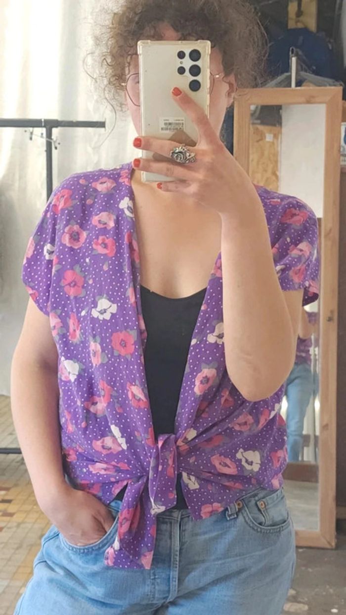 Superbe blouse vintage 80s en soie fleurie - photo numéro 1