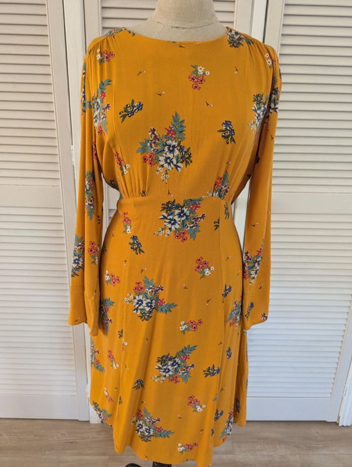 Robe moutarde - Motif floral - Yessica - photo numéro 1