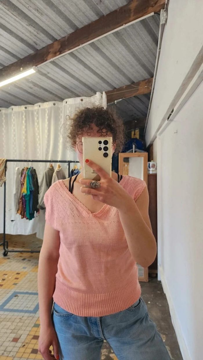 Joli petit top manches courtes vintage en maille - photo numéro 2