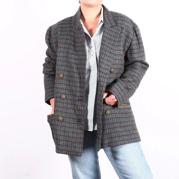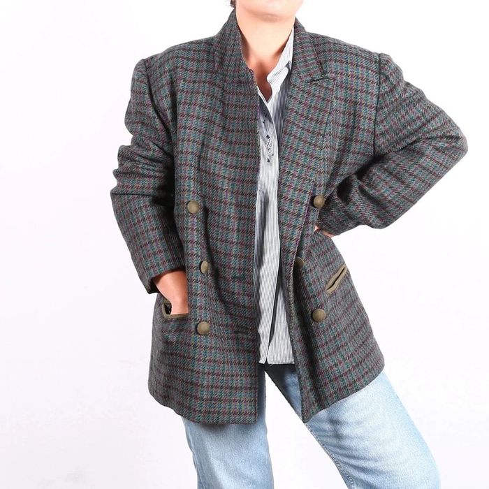 Blazer vintage 80's en laine motif pied de poule (#240593) - photo numéro 1