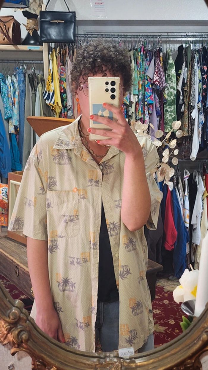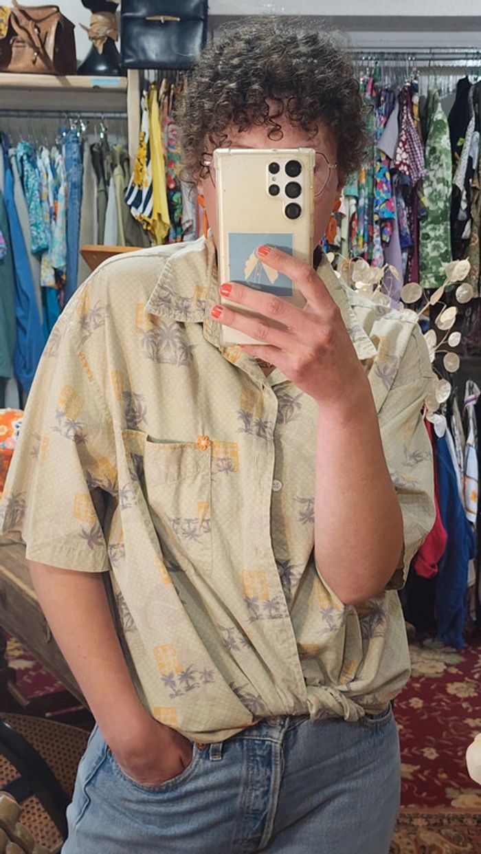 Jolie chemise unisexe en coton imprimé palmiers taille L - photo numéro 1