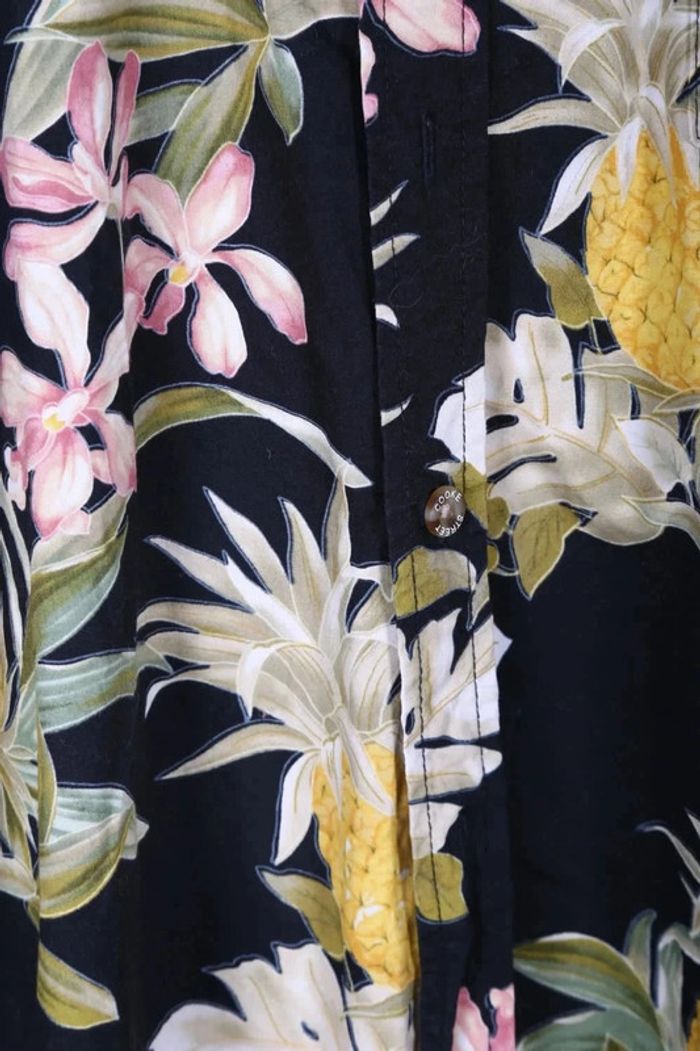 Chemise Hawaïenne vintage 90's en coton motif fleurs, fruits et ananas (#250032) - photo numéro 3