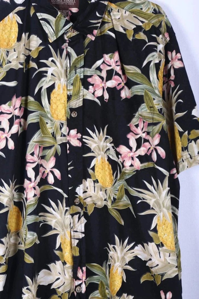Chemise Hawaïenne vintage 90's en coton motif fleurs, fruits et ananas (#250032) - photo numéro 2