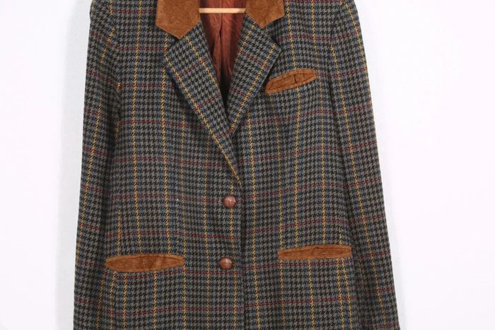 Blazer vintage 80's en velours & lainage mélangé motif pied de poule (#240557) - photo numéro 1