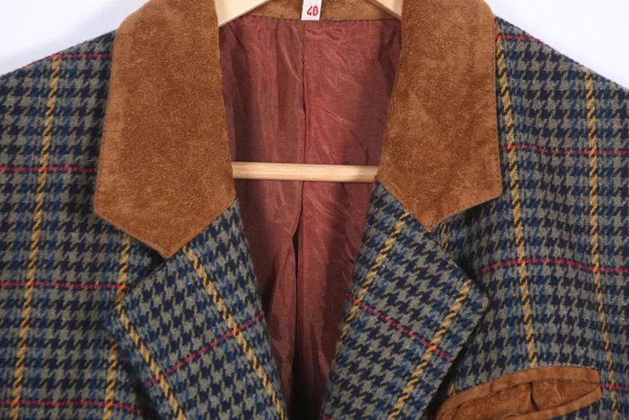 Blazer vintage 80's en velours & lainage mélangé motif pied de poule (#240557) - photo numéro 4