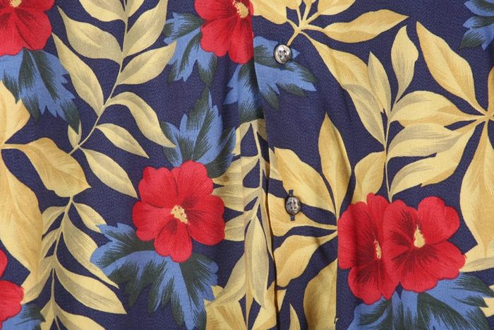 Superbe chemisette en coton (52%) et rayonne motif fleurs d'hibiscus (#240287)