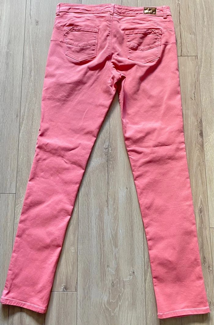 Pantalon Denim Promod rose coupe droite 2 poches devant 2 poches derrière