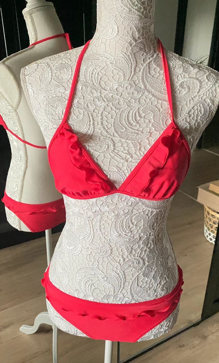 Maillot de bain rouge 3 suisses taille 38 soutien gorges forme triangle non rembourré